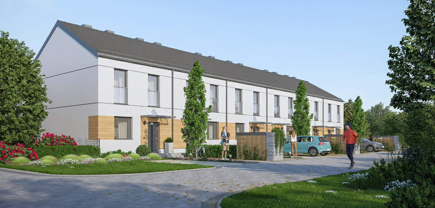 Do każdego domu przynależy prywatny ogród oraz miejsce parkingowe na podjeździe. To przestrzeń stworzona